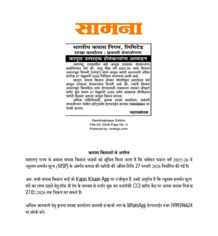 कापूस उत्पादक शेतकऱ्यांना आवाहन